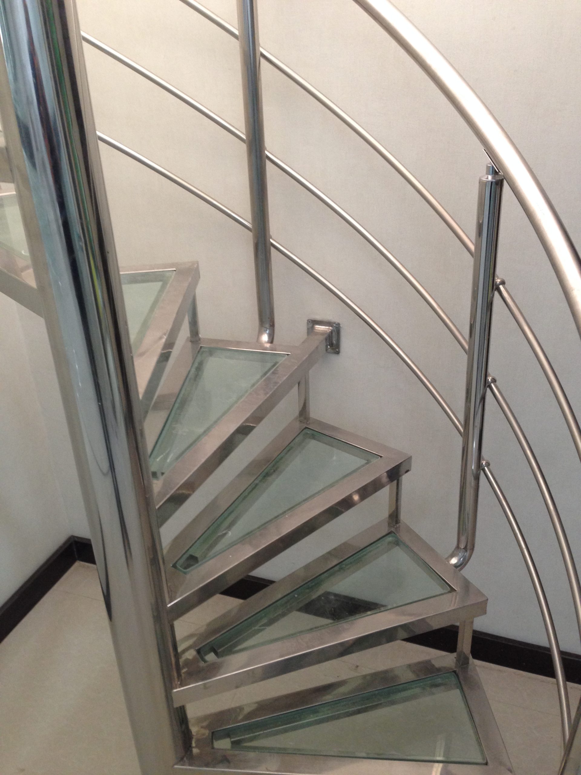پله استیل گرد به صورت مارپیچ تعبیه می شود و تامین ایمنی در آن بسیار مهم است. این محصول متشکل از یک ستون استیل با قطر 102 سانتی متر می باشد و کف پله ها نیز در ابعاد 45 در 85 تعبیه می شود. این پله به یک ردیف کامل از نرده محافظ استیل نیز مجهز است.